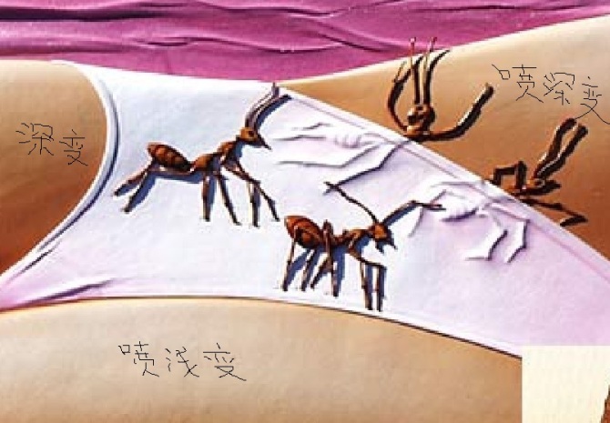 現(xiàn)在大多數(shù)廠家都會(huì)使用噴槍著色,皮雕噴涂漸變有2種方式,由淺往深過(guò)渡叫淺變。主要是稀釋劑的配比比列了的。由深往淺變叫深變。噴筆由于散色很均勻所以相對(duì)比較容易掌握的。但也需要一定的練習(xí)了。一般大面積淺變多。深變少,但人物動(dòng)物肌肉感多為深變,就是用噴筆由最深色處開(kāi)始往淺色區(qū)輕掃。下面是圖片