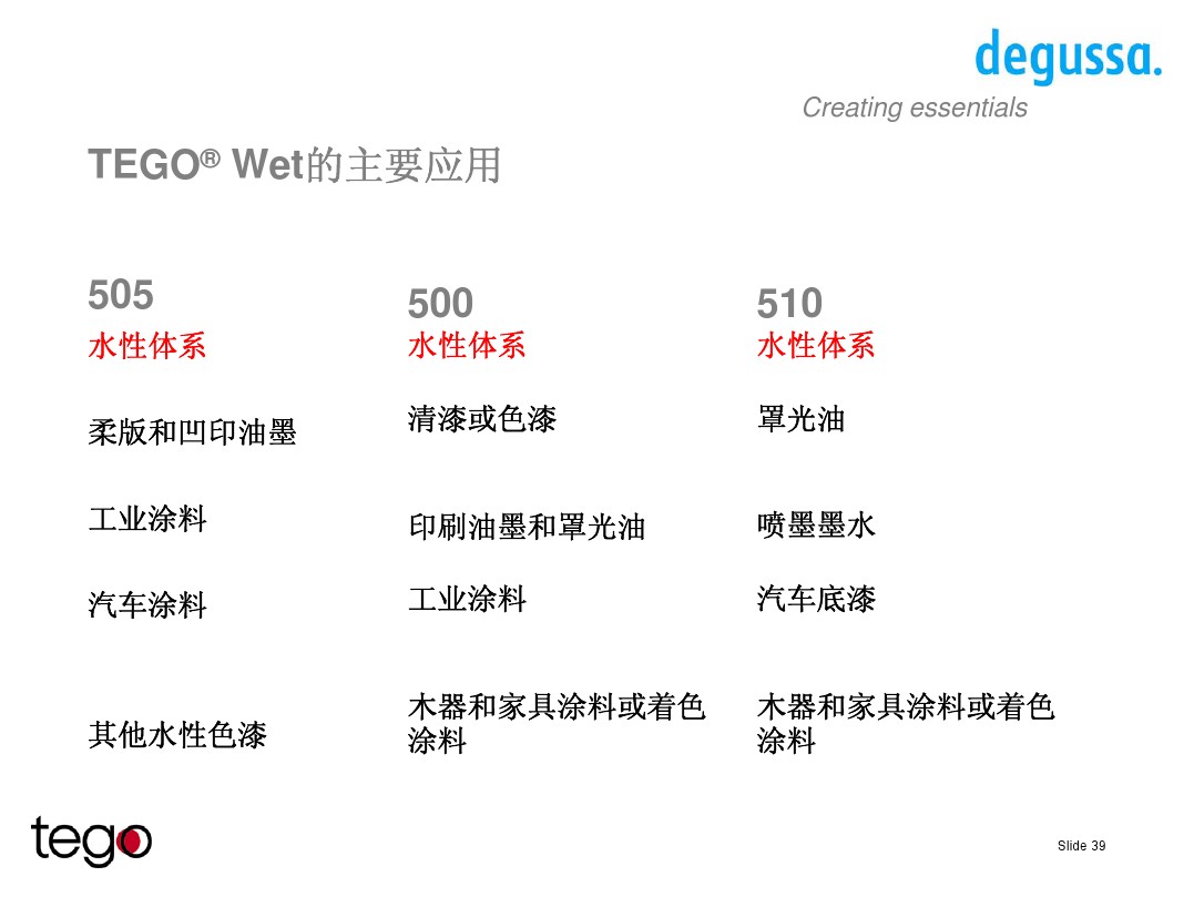 TEGO Wet 500\505\510適用于多種涂料和油墨工業(yè),提高特定涂料的油墨性有,而不影響其他性能