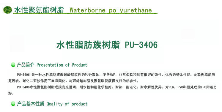 - 產(chǎn)品標(biāo)題:PU-3406 紙張 油墨 皮革 紡織專用樹(shù)脂