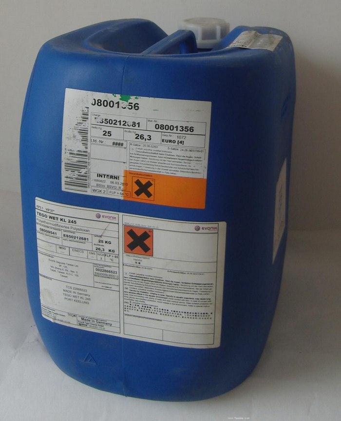 稀釋 •可用酯類、酮類或二元醉醚類溶劑稀釋 •用芳香族溶劑(甲苯,二甲苯,Solvesso100)稀釋時,建議在芳香族溶劑中加入異丁醇或酮類溶劑,比例為9:1 化學成分 含羥基官能團的聚二甲基硅氧烷 技術數(shù)據(jù) •供貨形式 液體 •活性物含量 100% •粘度,25℃ 約90mPas •基于不揮發(fā)份的羥值 約45mg KOH/g •按不揮發(fā)物計算 約0.5mg KOH/g •含水量 約0.05% 包裝 •25公斤 塑料桶 儲存穩(wěn)定性 未開封原包裝中6個月,但接觸錫(如金屬容器)將會縮短它的儲存期 |