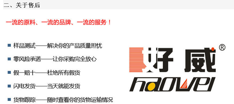 樣品發(fā)放說明:好威所有產(chǎn)品都可免費提供樣品給客戶試用,快遞費到付!廣東省外客戶常規(guī)發(fā)圓通快遞需要一周時間到達。省內(nèi)我們走全日通,正常情況下,如今日發(fā)次日能到達。